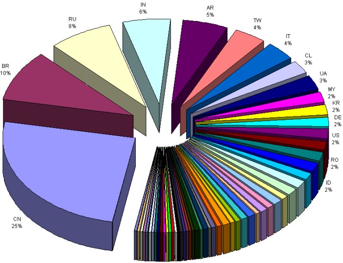 被感染用户根据国家分布的 阀门情况(数据来源:SRI International)